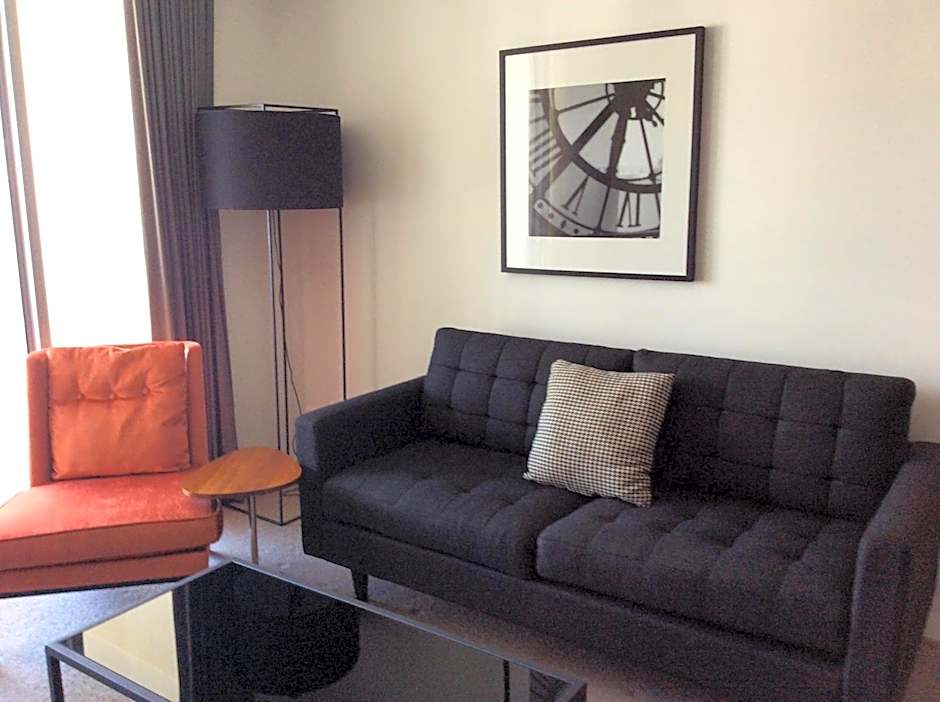 This air-conditioned apartment features a private balcony with city views. It also has a fully equipped kitchen, laundry facilities and a separate living area with a flat-screen TV.